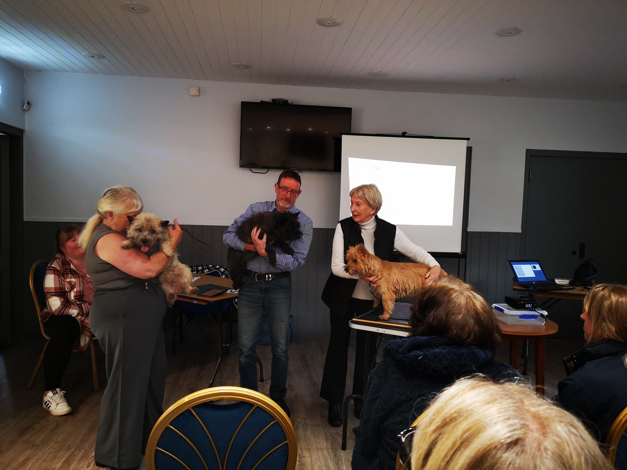 Sally Latto gave an overview of the Cairn Terrier with a very well behaved dog, and then Joan Percy gave the full presentation that Ann had been due to deliver, with input along the way from Sally. The presentation was excellent and clearly defined what any budding judge (or owner) should be looking for against the Breed Standard for the Cairn Terrier.